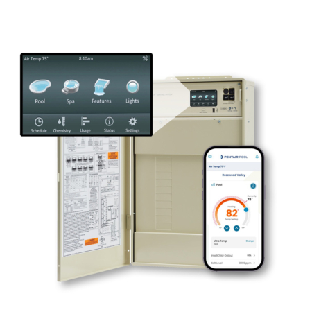 Smart pool automation system with intuitive control via a mobile app or touch panel. Easily manage pool settings, lighting, and spa features from anywhere.